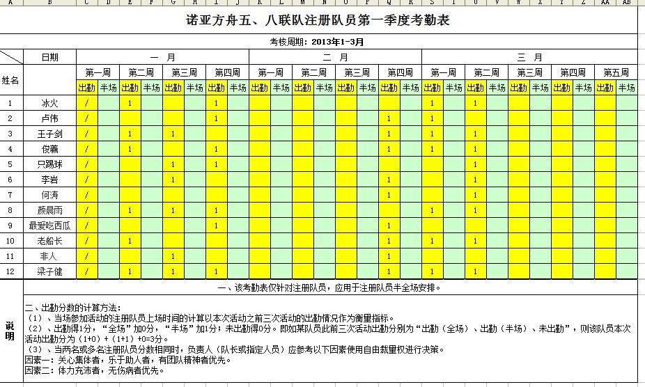 附件: 诺亚方舟五队注册队员第三季度考勤表.xls (2012-7-15 22:04, 30.5 KB) / 下载次数 2403